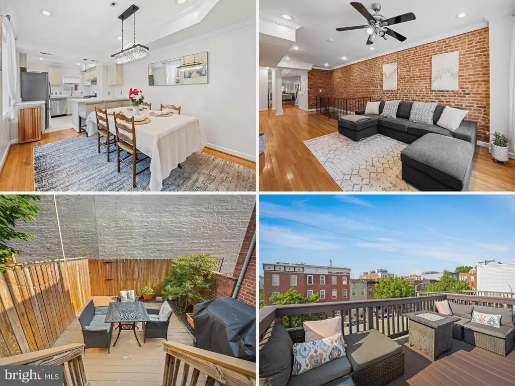 Welcome to 3303 Foster Ave—an oversized renovation in the heart of Canton! This stylish 3,000+ sqft home features two full and two half baths, exposed brick, tasteful hardwood floors, and a showstopper new gourmet kitchen with premium cabinetry, stainless steel appliances, quartz countertops, and a breakfast bar. The main level offers an open-concept layout, perfect for entertaining or everyday living. The recently remodeled basement, with new flooring, provides flexible space and has been used as a third bedroom. Upstairs, you'll find generous room sizes with great closets, a spacious primary suite, and plenty of storage throughout. Enjoy interior access to the freshly stained rooftop deck with panoramic water and skyline views, or unwind in the fully fenced backyard. With easy access to all major highways and bike paths in every direction, plus walkability to Canton Square, the waterfront, and endless dining and nightlife, this home checks every box! A little virtual staging.