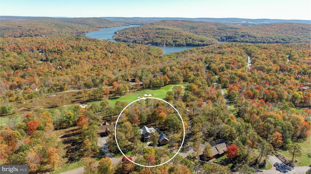 Located in the prestigious "Biltmore at Lodestone" atop Wisp Mountain, this 2021-built home blends modern architecture with the warmth of a mountain lodge. Spanning 4,416 square feet, it offers five spacious ensuite bedrooms and seven total baths, including a primary suite with a spa-style walk-in shower and whirlpool tub. The open main level showcases vaulted ceilings, a stone fireplace, and walls of glass framing sweeping views of the golf course, lake, and mountains. The gourmet kitchen features upgraded countertops, stainless appliances, and a large island that flows into the dining and family areas. The walk-in pantry is plumbed for an additional refrigerator, ideal for an owner’s fridge or extra storage. Just beyond, an all-season covered porch with a stone wood-burning fireplace, seating area, and TV extends the living space outdoors year-round. Three finished levels provide generous space for family and guests. The loft lounge offers a quiet retreat with its own wet bar and mini fridge, while the lower level includes a full gaming area, wet/dry bar, mini fridge, and secondary living space for entertaining. The attached two-car garage includes storage space above, and a pull-through driveway allows easy access for multiple vehicles. The 0.65-acre lot is beautifully landscaped, remarkably level for its mountaintop location, and designed for both function and enjoyment. Outdoor highlights include stone hardscaping, a built-in fire pit, and a hot tub overlooking the fairway and lake. A whole-house Generac generator provides reliable comfort in every season. With a proven rental history, refined finishes, and a thoughtful floor plan, this property delivers modern craftsmanship, mountain views, and four-season living just minutes from Wisp Resort and Deep Creek Lake.